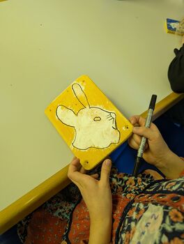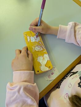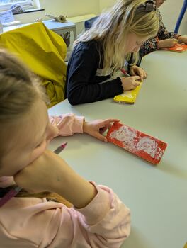Während eine Gruppe unter Anleitung des Künstlers Axel Luther gestalterisch tätig wurde, philosophierte die andere Hälfte mit Seminarrektorin Barbara Renner über die Bedeutung des Schädels.