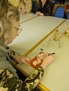 In einem dreiteiligen Modul untersuchten die Teilnehmer mit Dr. Evers und Dr. Albert echte Tierschädel aus wissenschaftlicher Sicht, bevor sie kreativ und gedanklich tief eintauchten: