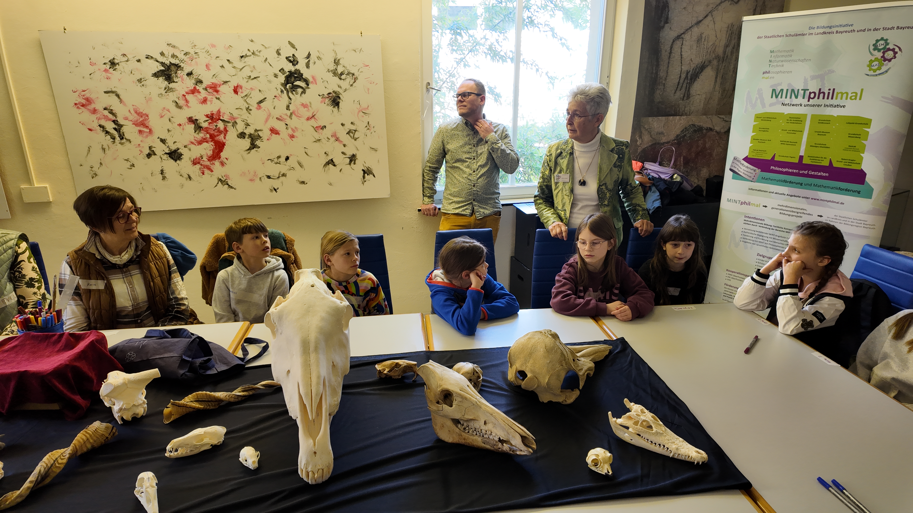 Das neue MINTphilmal-Angebot im Urweltmuseum, initiiert von Marina Lindner und Andrea Riedel (MINTphilmal) in Kooperation mit der Museumsleitung Dr. Serjoscha Evers und Dr. Ulrike Albert, verbindet Wissenschaft, Philosophie und Kunst: MINT-phil-mal.