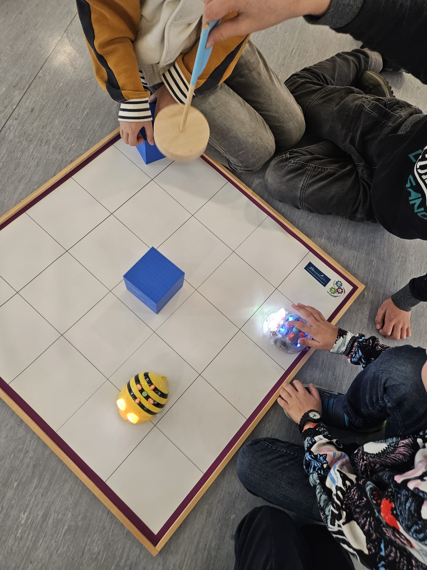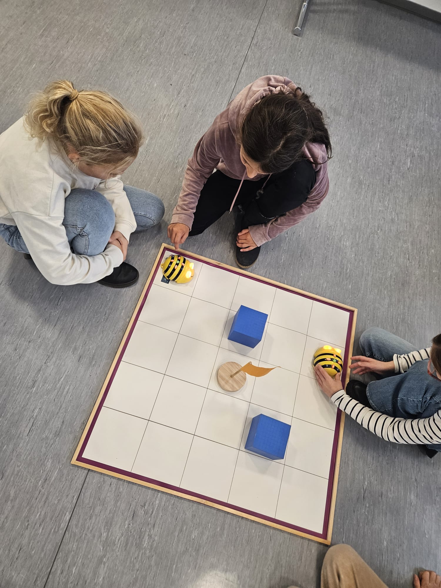 Am 24. 10. 2025 hatten Kinder über die VHS Bindlach die Möglichkeit, das MINTphilmal-Angebot der Grundschule Herzoghöhe im Bereich Coding kennenzulernen. Sie konnten unter Anleitung von Doris Jaqlin und mit Unterstützung von Rainer Küffner kleine Bienenroboter, genannt Bee-Bots, programmieren. Durch die Eingabe von Befehlen gelang es den Kindern, die Bee-Bots dazu zu bringen, bestimmte Ziele auf einem Spielfeld zu erreichen.