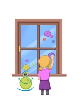 und eine Gruppe von Kindern hat sich versammelt, um gemeinsam ein kreatives Projekt zu starten. Sie hatten fünf verschiedene Farben (grün, orange, gelb, lila, blau) mitgebracht, um Fensterblumen zu gestalten.